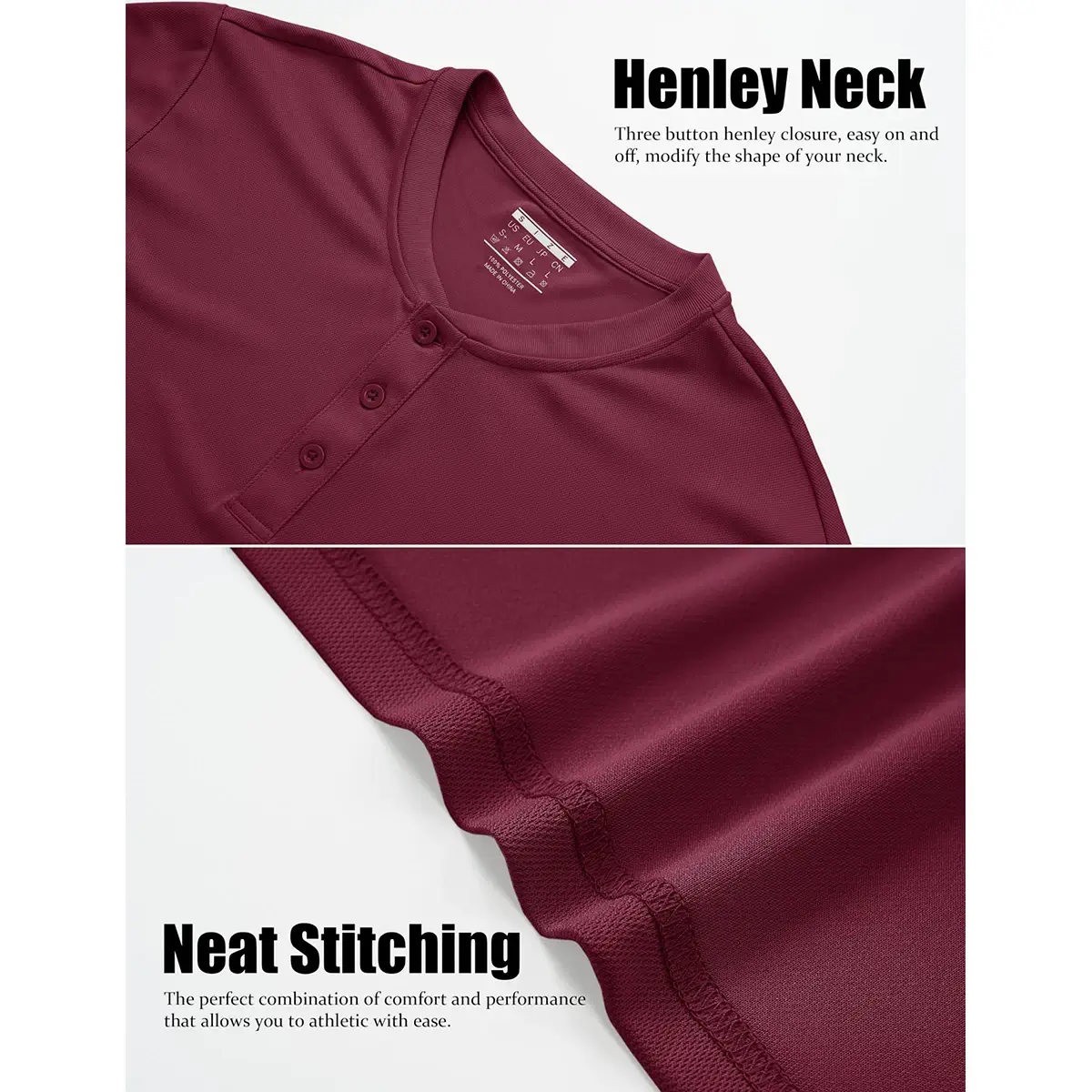 • Adjustable Henley Collar: Features a fashionable 3-button placket that allows you to adjust the neckline for a personalized look, offering a touch of rugged, masculine style.