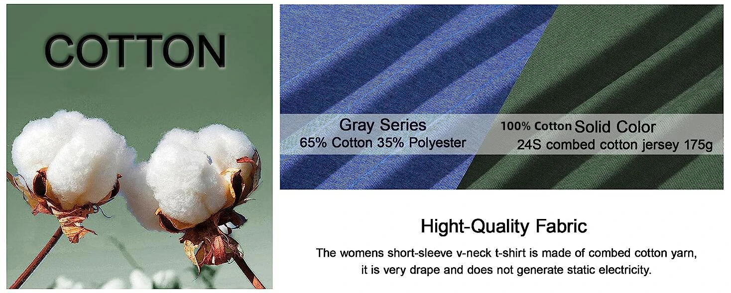 Summer Cotton V-Neck T-shirts Womens Casual Basic Tee shirts